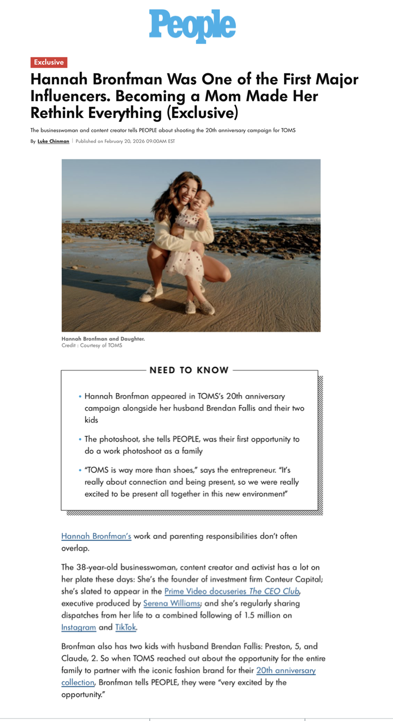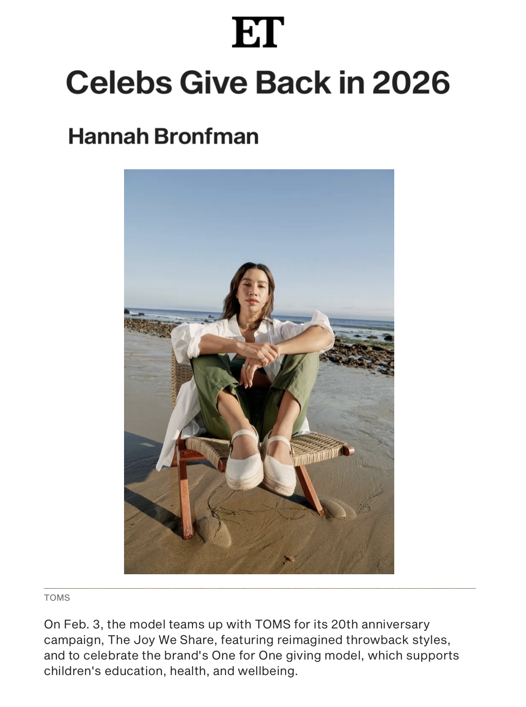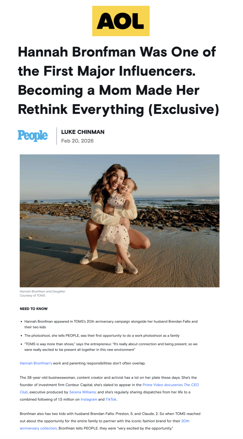 As the campaign evolved, media expanded into talent-driven features around Hannah Bronfman and her family, connecting product to emotion.